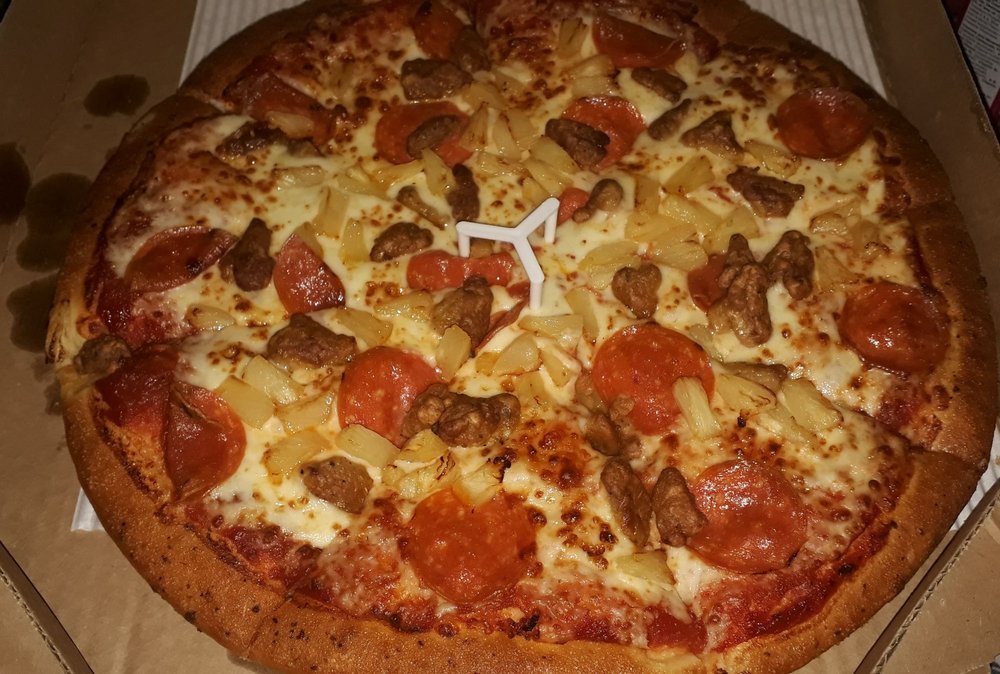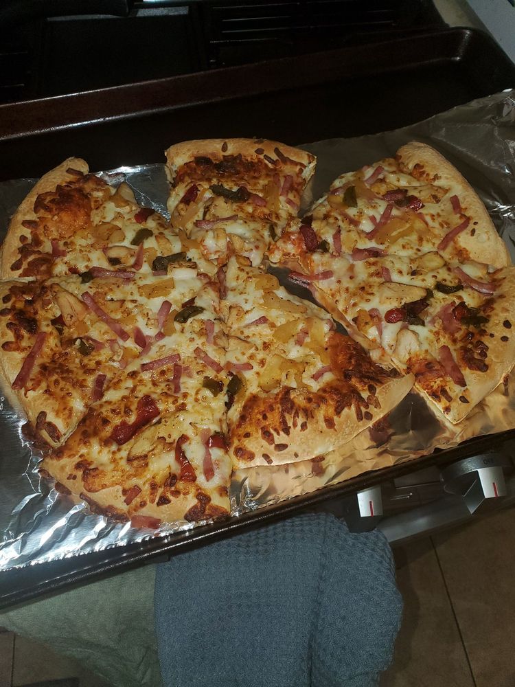 Give your taste buds a tropical vacation with this amped up Hawaiian pizza. It's got tasty chicken, ham, pineapple AND green peppers.